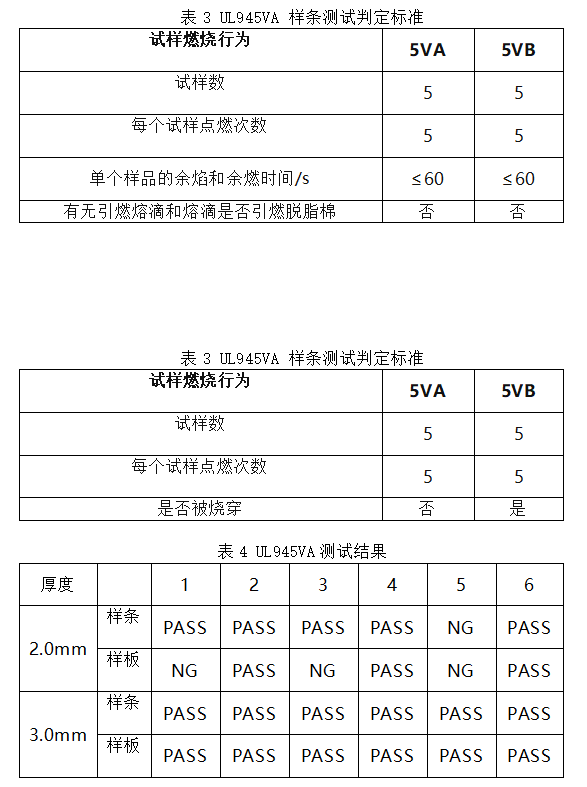(3)对于UL945VA级别的阻燃测试,由于火焰强度较高,一般的磷氮阻燃剂满足不了要求,需协效一些稳固成碳的物质方可通过,尤其对于厚度较小的制品。