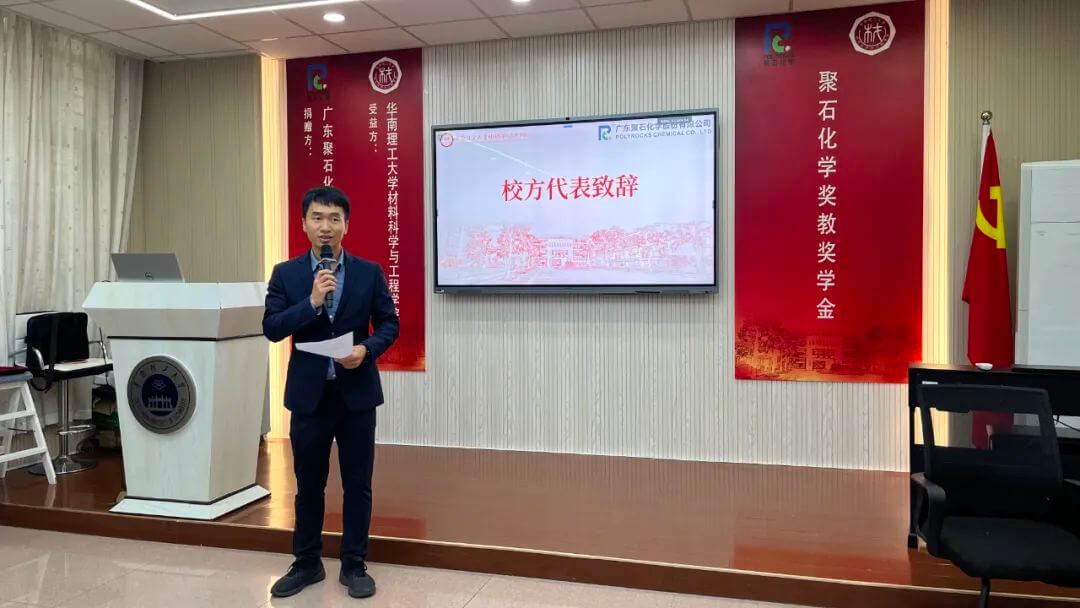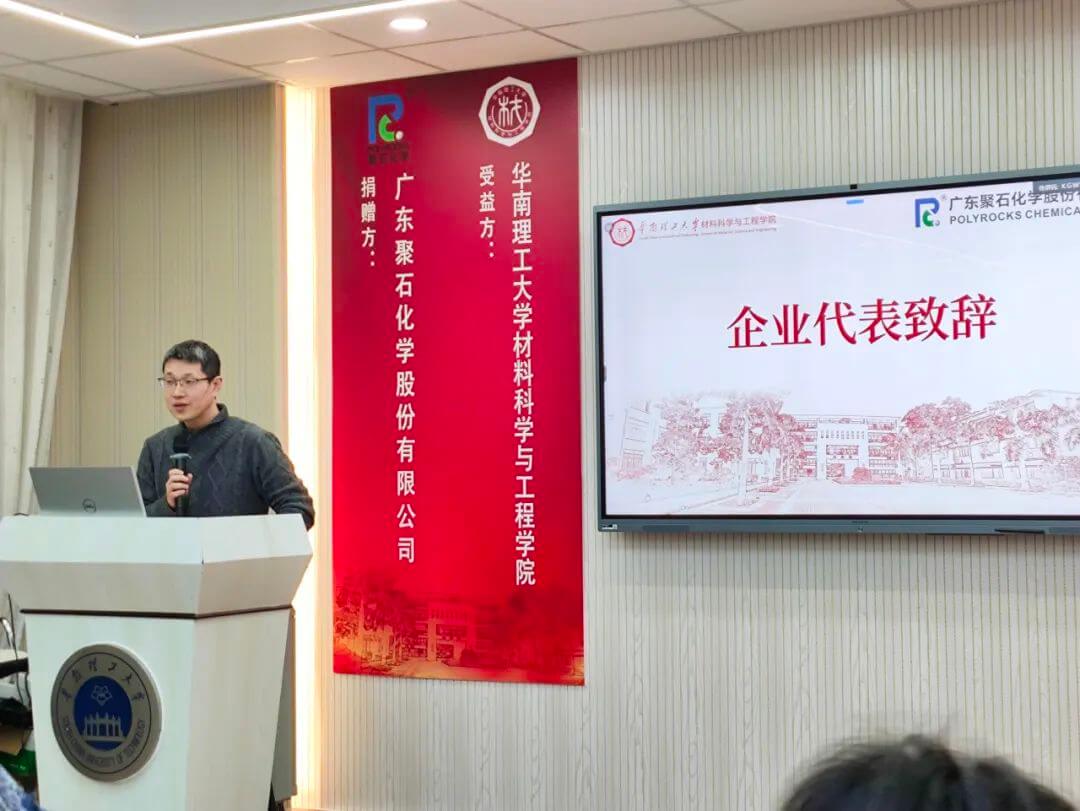 接着,公司总经理周侃先生发表了热情洋溢的讲话。他首先对华南理工大学的热情接待表示感谢,并强调了bb集团有限公司对于教育事业的承诺和支持。周总表示,通过“bb集团有限公司奖教、学金"的设立,希望能够激励教师们的教学热情和学生们的学习动力,同时促进材料科学与工程领域的学术研究和技术创新。