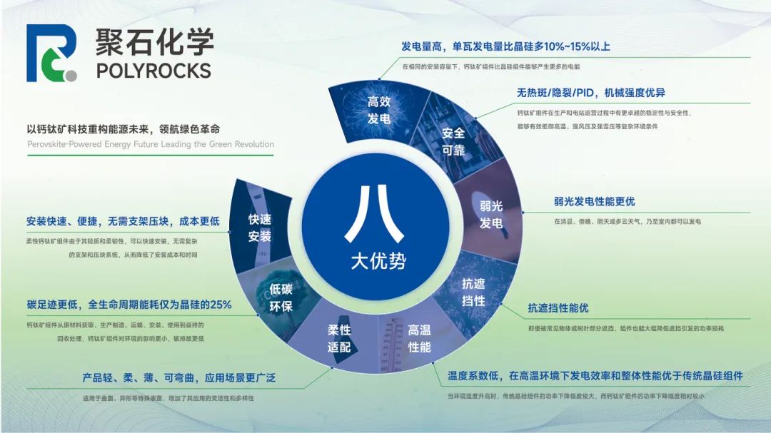 发电量高,单瓦发电量比晶硅多10%~15%以上。在相同的安装容量下,钙钛矿组件比晶硅组件能够产生更多的电能。