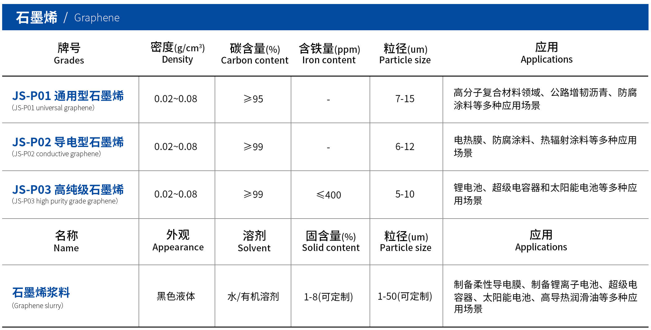 高纯级石墨烯JS-003采用自主知识产权的物理法生产,工艺技术成熟稳定;产品具备高质量、低成本优势;产品具有纯度高、缺陷少、厚径比大、导电导热性能优异等特点。